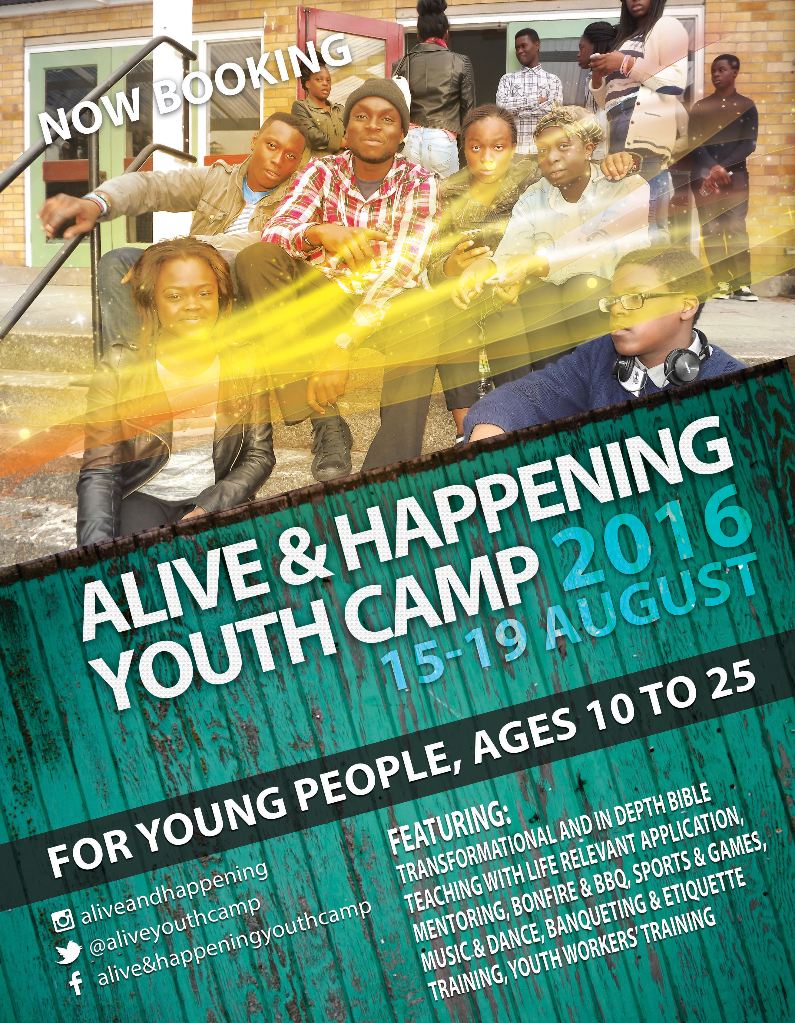 Conway Centre Llanfairpwll, Anglesey, Wales, United Kingdom‘Alive and Happening’ is a Youth Camp where young people, youth leaders/ministers come together regardless of gender, background, race and denomination for a time of reflection, empowerment, healing, and discovery, and training, enhancement of gifts and fullness of joy at the feet of Jesus.