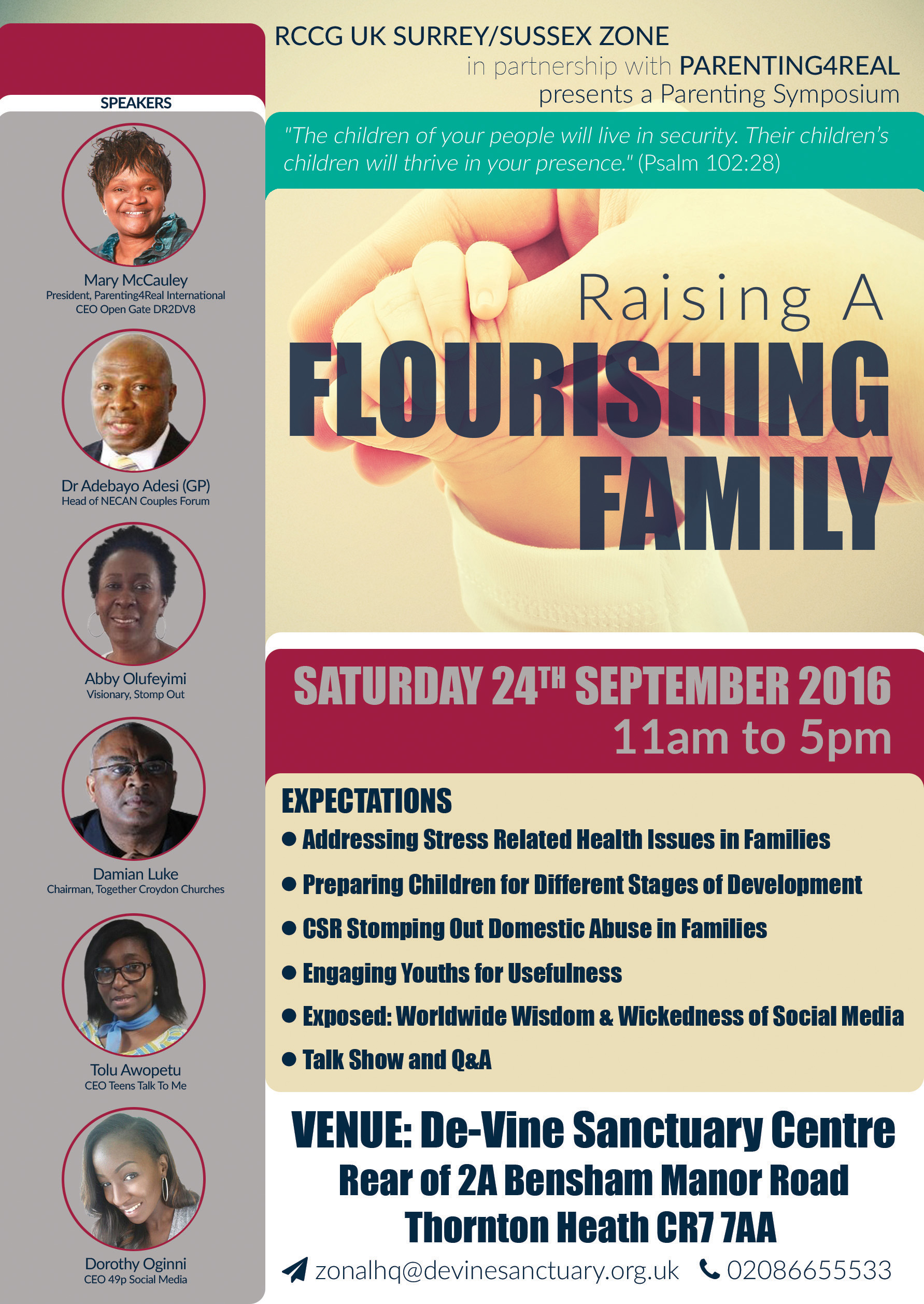 True Vine Centre Harris Invictus Academy, 88 London Road, Croydon, Surrey, United KingdomRCCG UK Surrey/Sussex Zone in partnership with Parenting4Real presents a Parenting Symposium themed: "My Family - Thriving in His Presence"