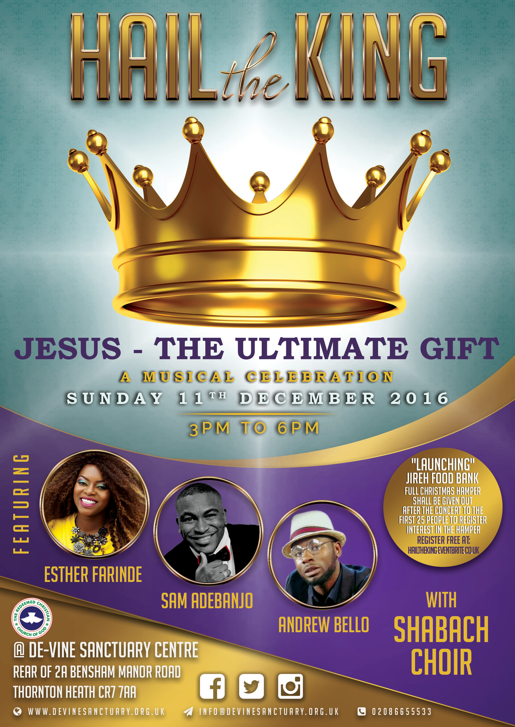 True Vine Centre Harris Invictus Academy, 88 London Road, Croydon, Surrey, United KingdomHail the King: A musical celebration of Jesus - The Ultimate Gift